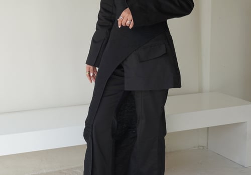 Suit set comes in 3 pieces, a beautiful fitted blazer, a wide-legged trouser, and a single-shoulder sleeveless cardigan.